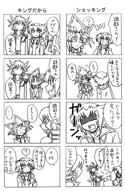 十代達が飛んだ遊戯の世界は、十代が前に会った遊戯の世界(GX最終回の)じゃないと思うので、遊戯は十代のこと知らないんじゃないかなと思ったり。